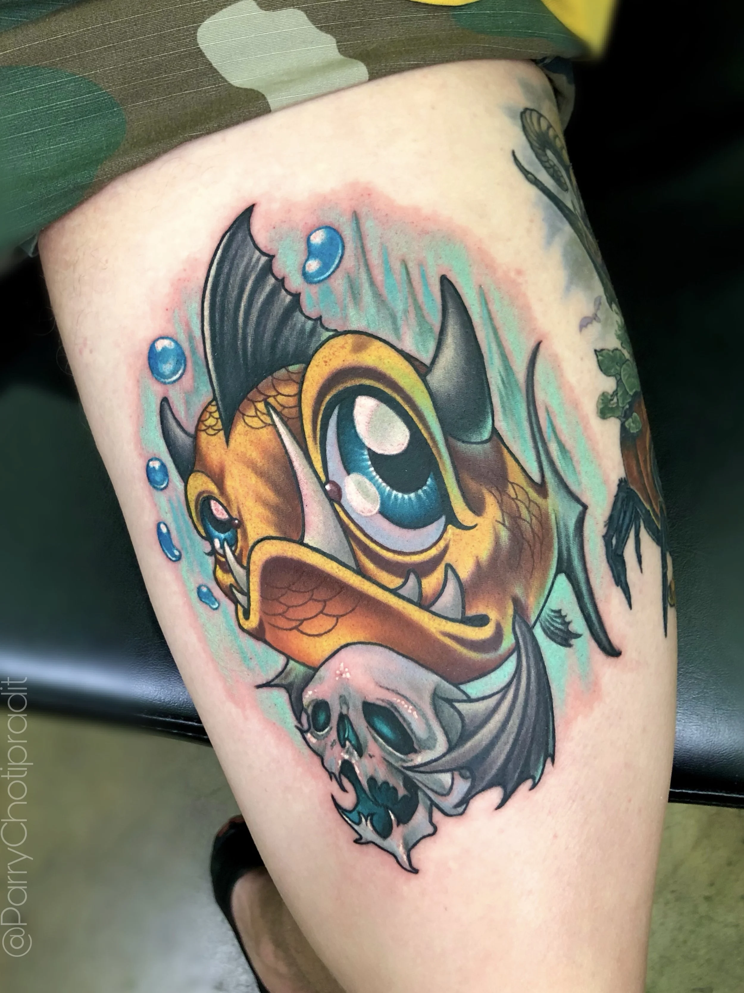 Parry is best known for his large scale, unique, creative illustrated style. He enjoys creating characters, illustrating animals and caricatures of people. Pretty much anything he can put his twist to and create a world within a piece, Parry will put his signature on it! Parry puts his all into every tattoo he does to make sure everybody leaves happy with an awesome, custom tattoo!